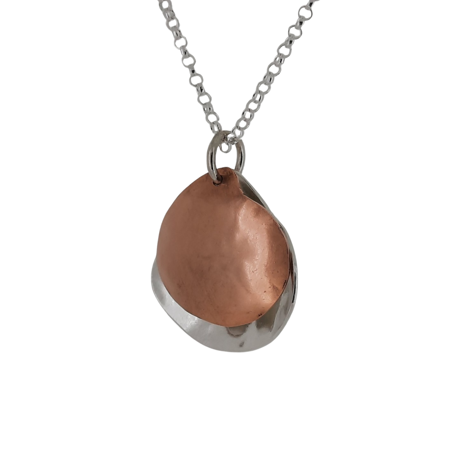 Inspired by our oceanfront, Naomi hand cuts 'Cockle shells' in sterling silver and finishes them off with hammered finish. Two cockles are then hung on a 45cm sterling silver chain to create this crowd favourite piece.