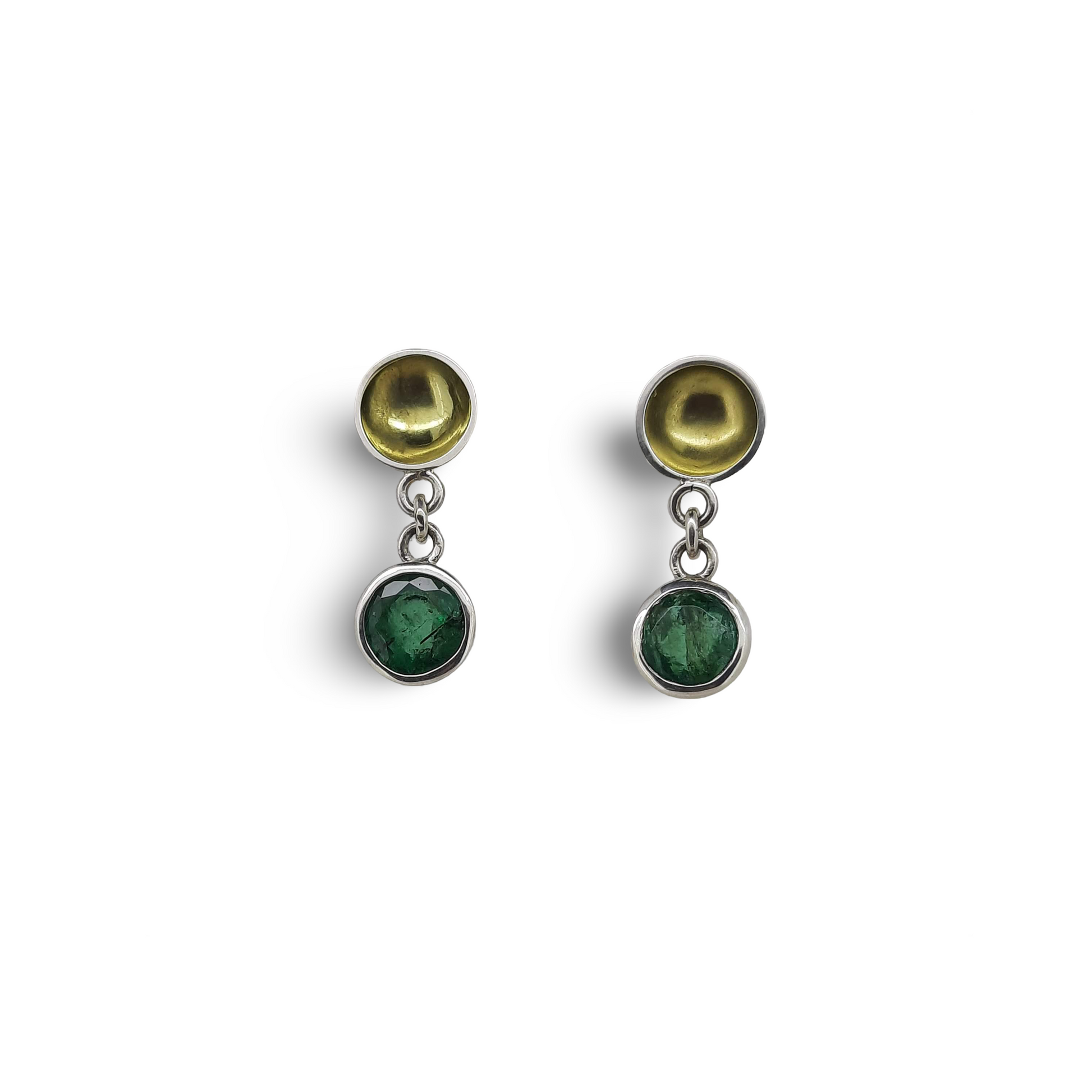 Feel luxurious and elegant with our Emerald & Gold Drop Earrings! Handcrafted in sterling silver, these stunning earrings feature vibrant emeralds and 18ct gold for added sophistication. Elevate any outfit with these beautiful, one-of-a-kind earrings.