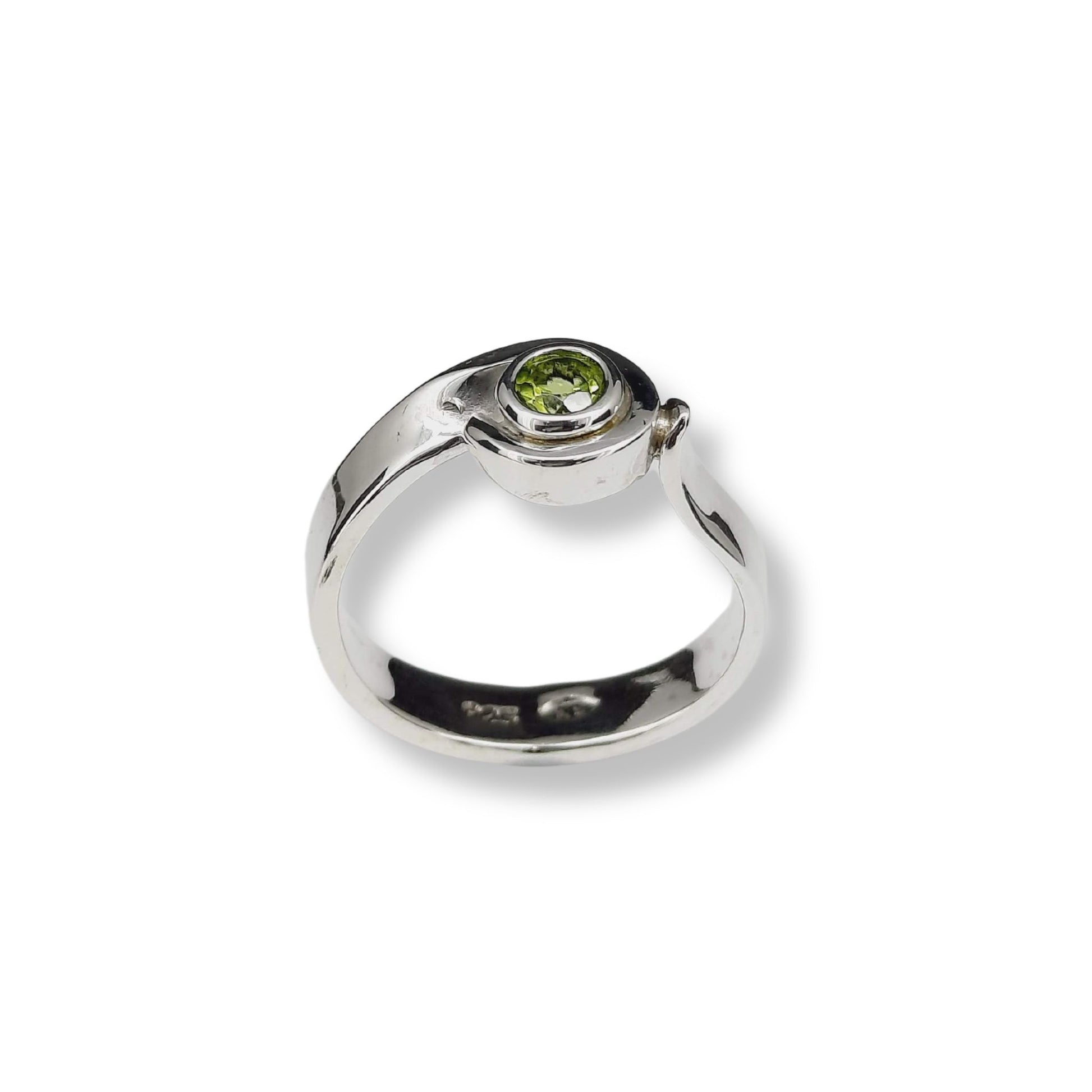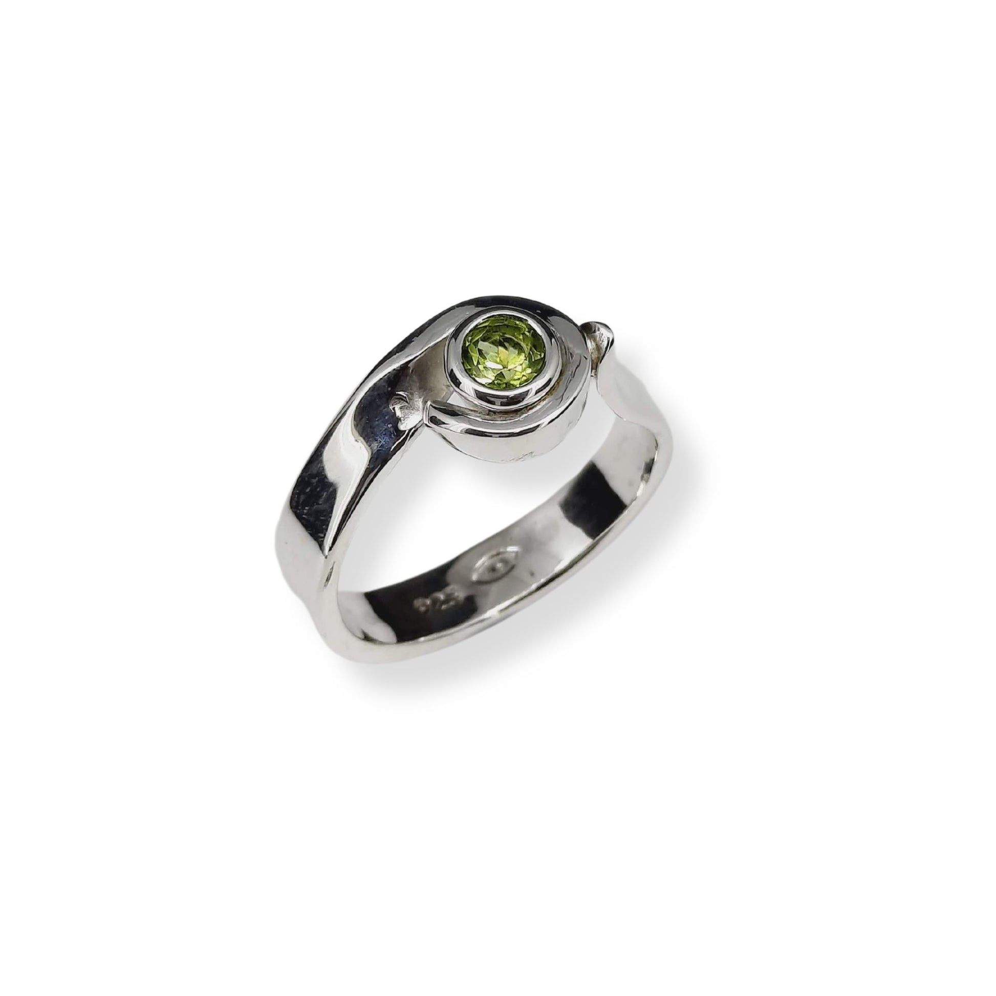 Indulge in the exquisite beauty of the Green Peridot Swirl Ring. Handcrafted by renowned jewellery designer Naomi Schwartz, this sterling silver ring features a mesmerizing swirl design and a dazzling green peridot stone. Elevate your style with sophistication and elegance.