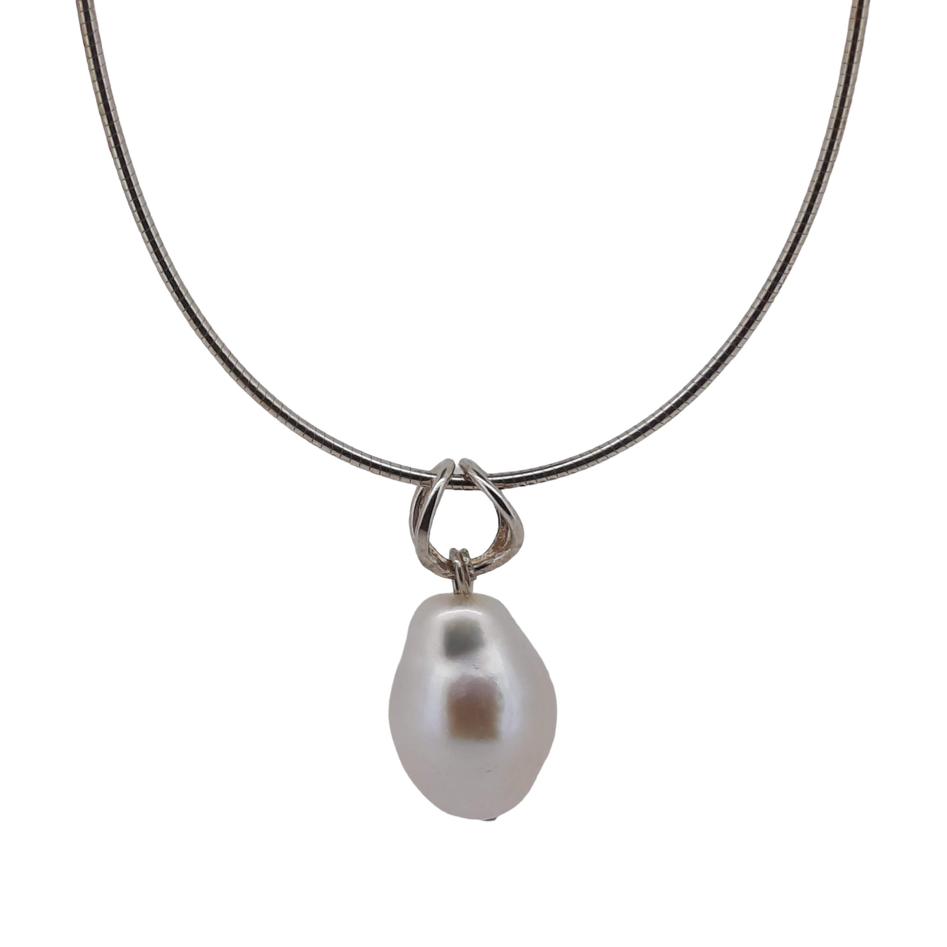 This pendant is designed with sterling silver in a handcrafted "infinity" style, featuring a freshwater baroque pearl as part of Naomi's signature collection.