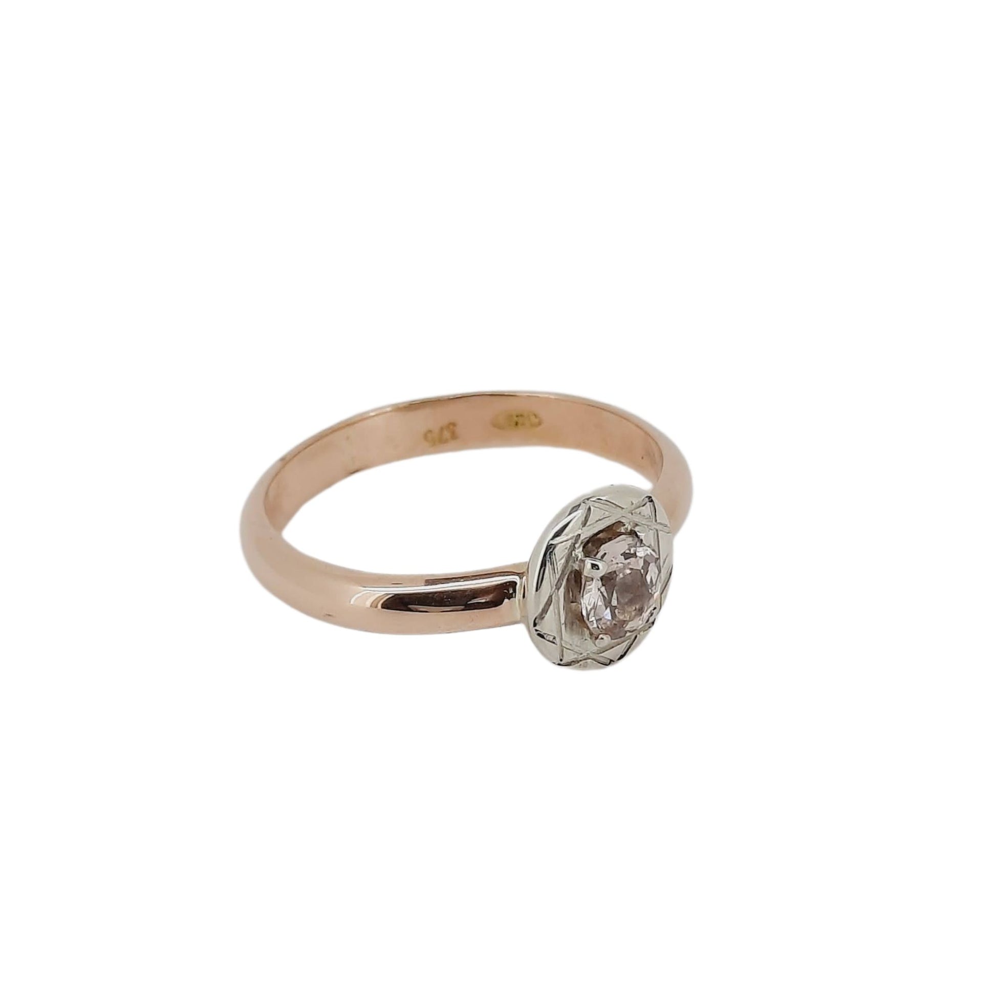 Handmade by Naomi Schwartz using 9ct Rose and 9ct White Gold, an oval blush sapphire sits beautifully in the centre of a textured setting.