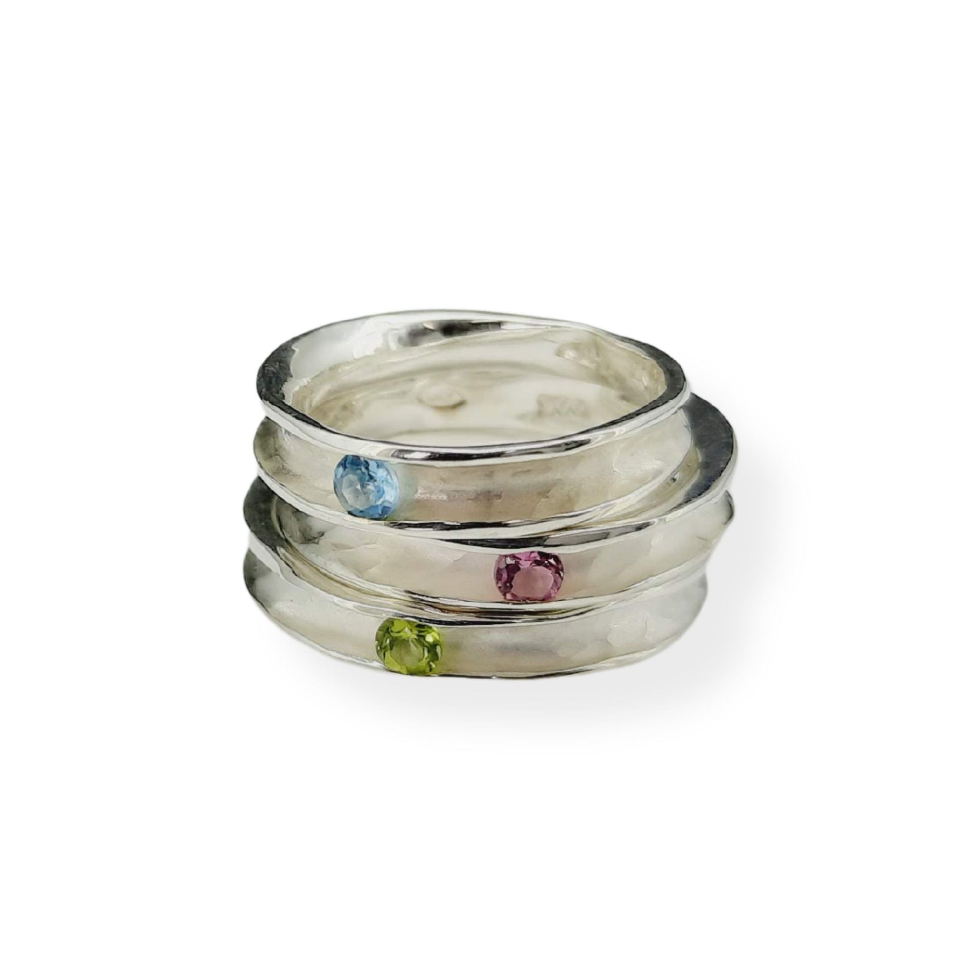 Handcrafted by Naomi Schwartz in sterling silver, these rings boast her signature anticlastic style and a hammered finish. Select your semiprecious or precious gemstone to add a sentimental touch to your contemporary ring.